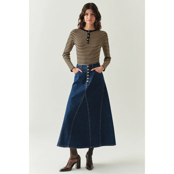 Product: Cotton Denim Regular Midi Skirt With Pockets