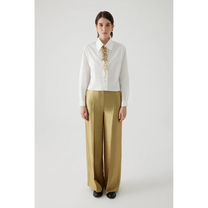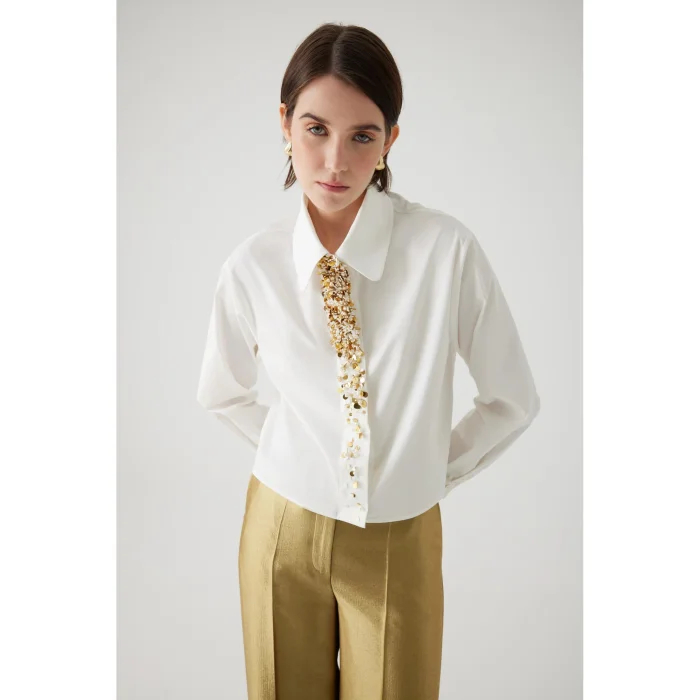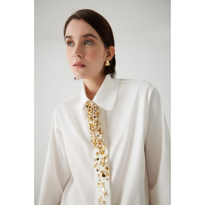 Standing out with its embroidery details, this cotton ecru shirt offers a comfortable and stylish look with its straight cut and oversized design. As one of the modern pieces of the 24 Fall/Winter collection, it adds an elegant touch to your daily combinations. An option that is both comfortable and stylish.