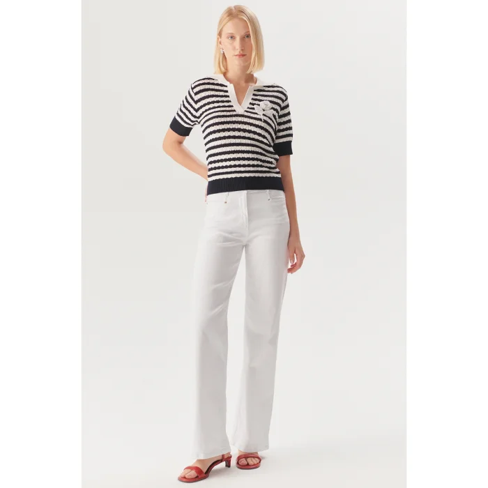 Standing out with its natural texture and modern design, white high-waisted regular fit denim trousers with 98% cotton content offer both comfort and elegance together. Thanks to its breathable cotton structure, it provides comfort all day long, while its light stretchy fabric offers freedom of movement. The high waist cut elegantly emphasizes the body lines, while the pocket details on the back give it a minimal and modern look. These trousers, which have a wide range of uses from daily combinations to stylish evening styles, will be indispensable in your wardrobe every season with their timeless elegance.