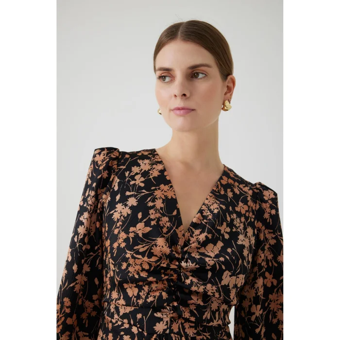 Product: Floral Patterned V-neck Waist-fitting Midi Dress