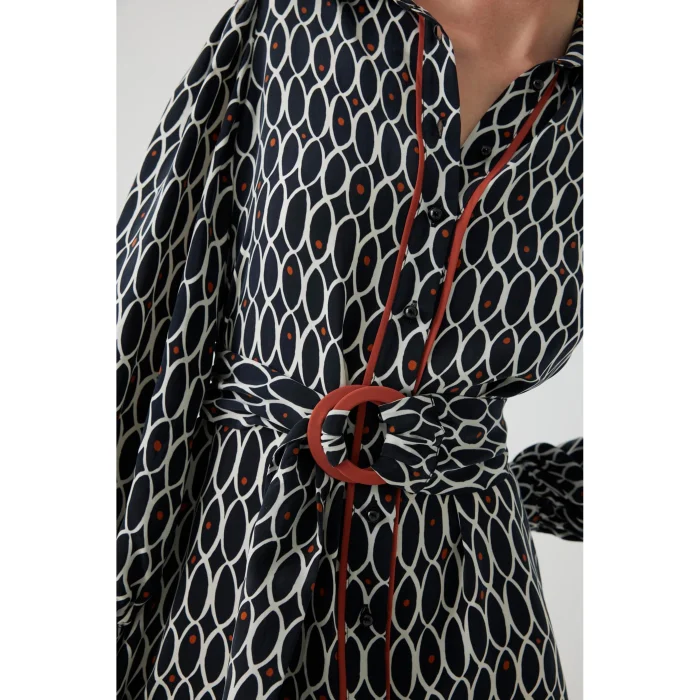 Geometric Patterned Satin Regular Mini Dress