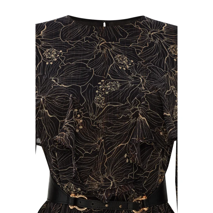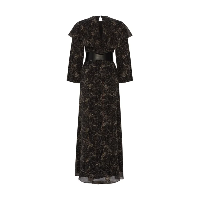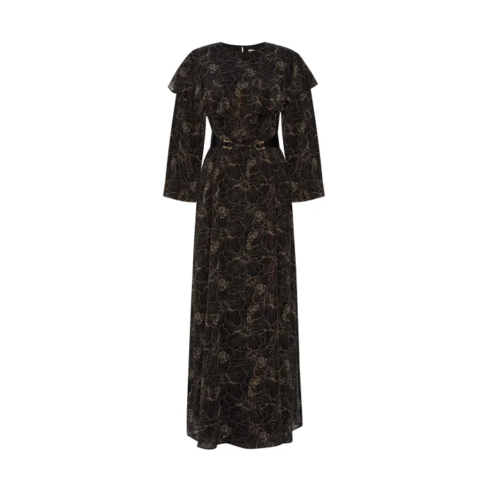 Product: Glitter Chiffon Patterned Belted Regular Midi Dress