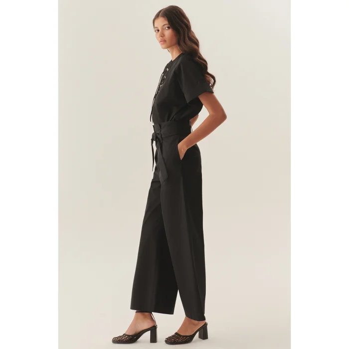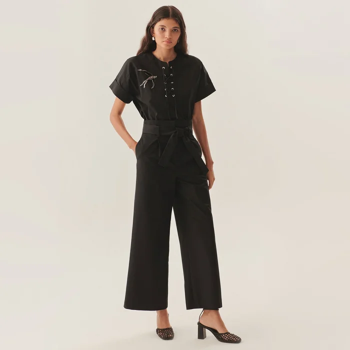 Product: High Waist Belted Loose Fit Pure Cotton Black Trousers
