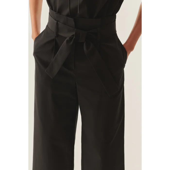 Product: High Waist Belted Loose Fit Pure Cotton Black Trousers