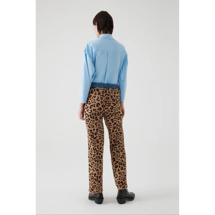 Product: High Waist Leopard Patterned Regular Knitwear Trousers With Elastic Waist Denim Garnish