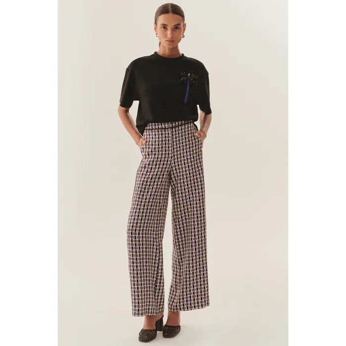 Standing out with its unique pattern and comfortable cut, High Waist Pocket Loose Fit Patterned Trousers add a touch of sophistication to your style. While it creates an elegant silhouette with its high waist design, it offers freedom of movement and comfort all day long thanks to its loose cut. Pocket details both add functionality and give it a modern feel. These trousers, which highlight your style with their patterned texture, are a candidate to be the key part of effortless elegance!