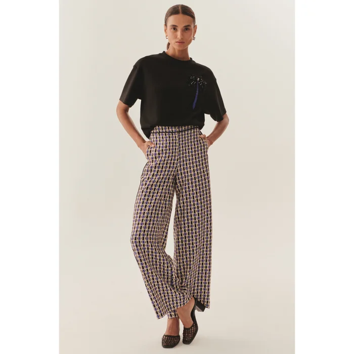 Product: High Waist Pocket Loose Cut Patterned Trousers