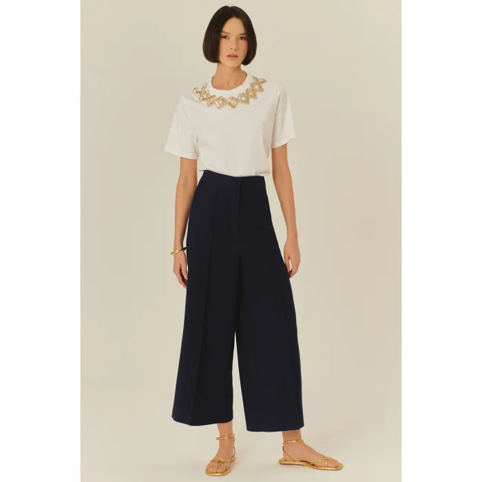 Product: High Waist Wide Leg Navy Blue Culotte Trousers