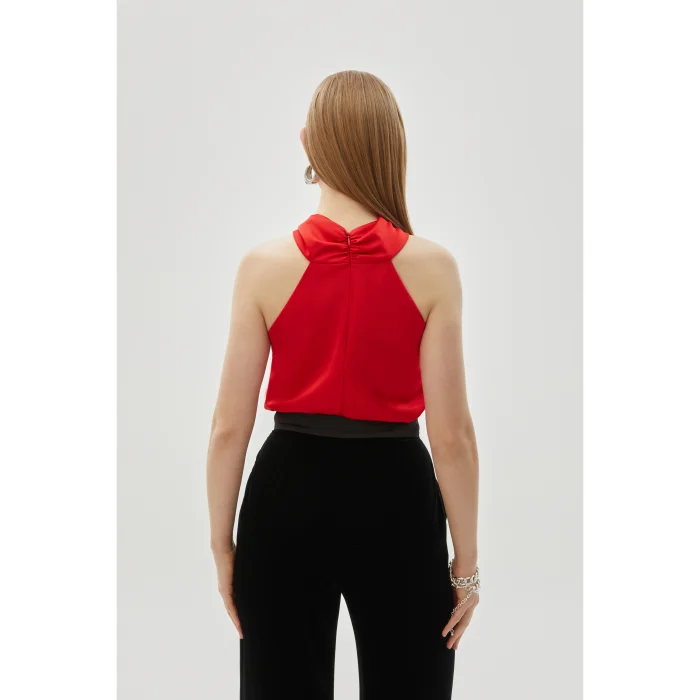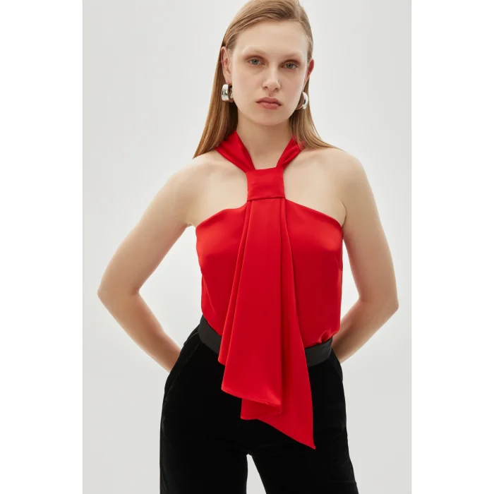 Product: Knot Detailed Satin Regular Red Blouse