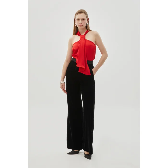 Standing out with its satin texture and knot detail, this red blouse offers a sophisticated elegance. While it provides comfort with its regular fit cut, its elegant design will make a difference on special occasions and invitations. Add elegance to your style as one of the standout pieces of the 24 Fall/Winter collection.