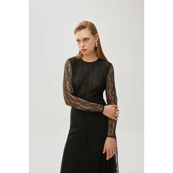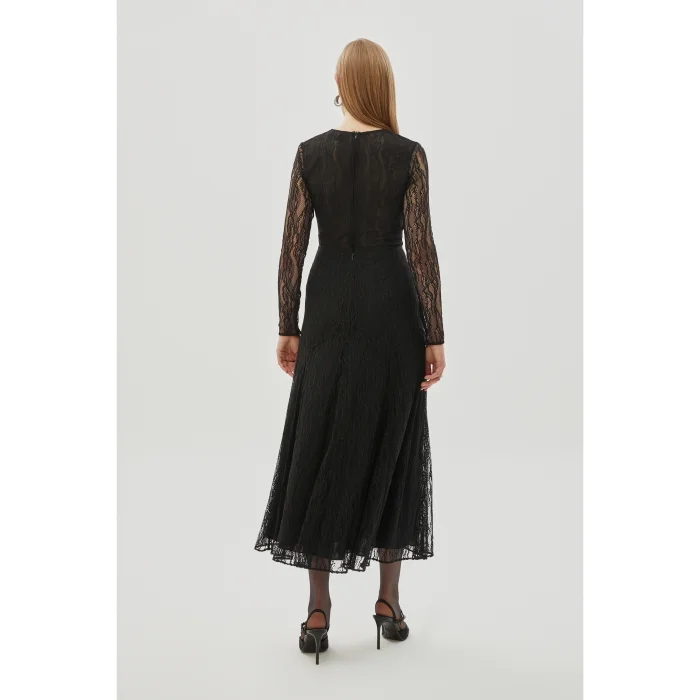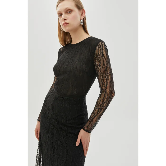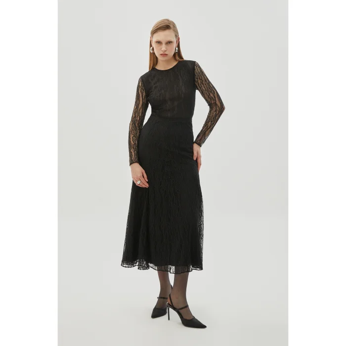 The Black Lace Long Sleeve Slim Fit Knitted Blouse offers a touch of sophistication with its elegant lace details. Its slim fit fit elegantly accentuates your body contours, while its long-sleeved design and knitted fabric provide comfort. With its stylish and comfortable structure, this blouse is an ideal choice for special evenings and daily combinations.