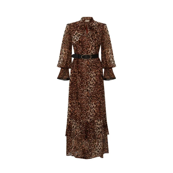 Product: Leopard Patterned Belted Regular Maxi Dress