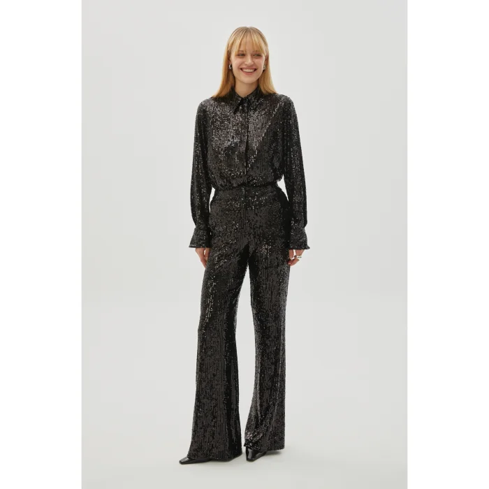 With its wide-leg design with lined and sequin details, these regular trousers offer elegance and sparkle together. As one of the special pieces of the 24 Fall/Winter collection, it is the perfect choice for both special events and stylish invitations. Add an eye-catching touch to your style.