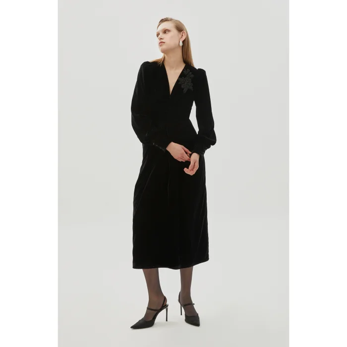 Offering elegance and elegance together, the Black Maxi Boy Regular Dress with Lycra with Embroidered Collar Detail stands out with its sophisticated embroidery details and lycra fabric. The embroidered neckline adds an elegant touch to the dress, while the maxi length creates a long and stylish silhouette. The regular cut perfectly balances comfort and elegance.