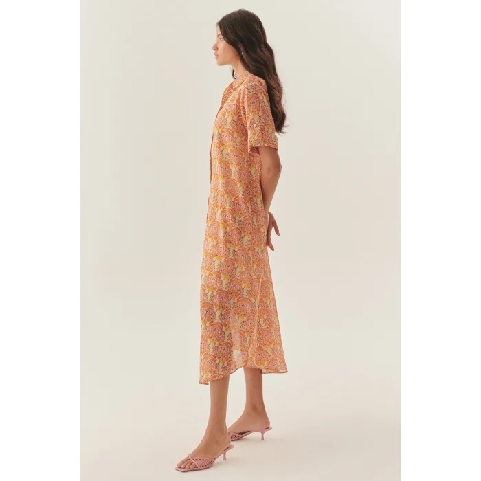 Product: Midi Length Floral Patterned Shirt Dress