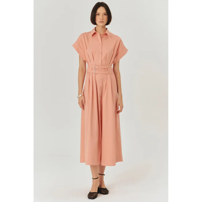 Product: Off-the-shoulder Belt Detailed Midi Length Cotton Shirt Dress