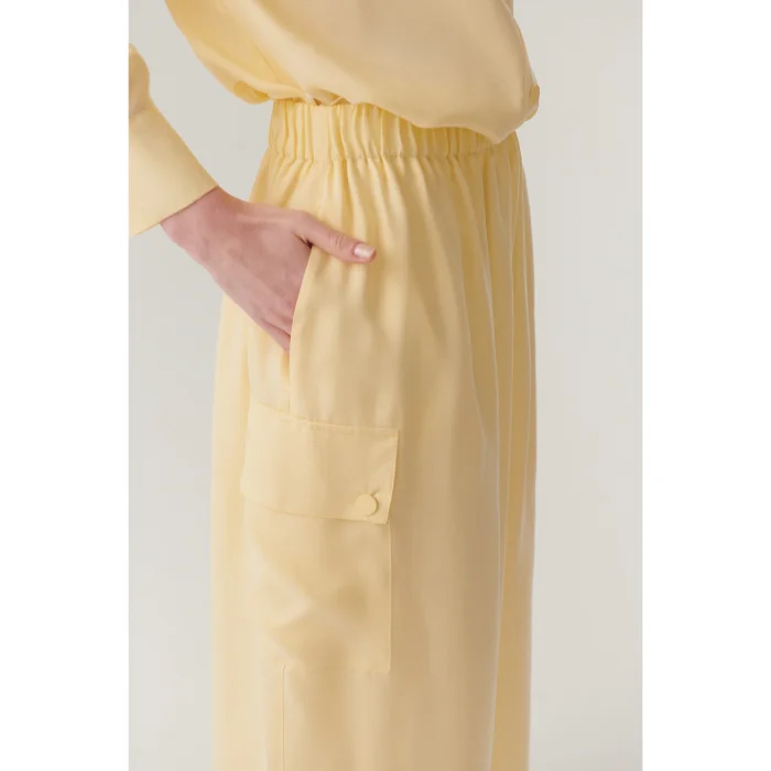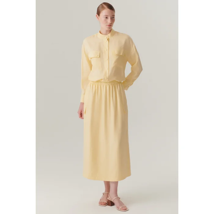 Product: Pocket Elastic Waist Midi Length Lyocell Yellow Color Skirt