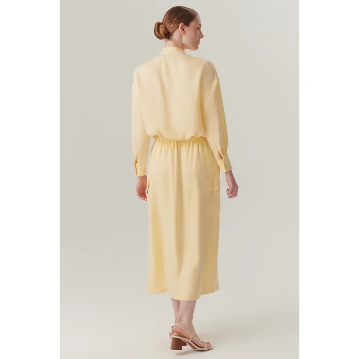 Product: Pocket Elastic Waist Midi Length Lyocell Yellow Color Skirt