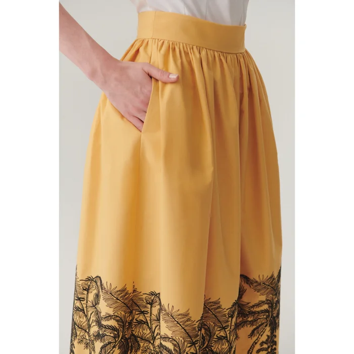 Offering comfort all day long with its breathable pure cotton fabric, this skirt adds an energetic touch to your style with its midi length design and patterns on the hems. It creates a modern and feminine silhouette while allowing you to move the comfortable fit freely.