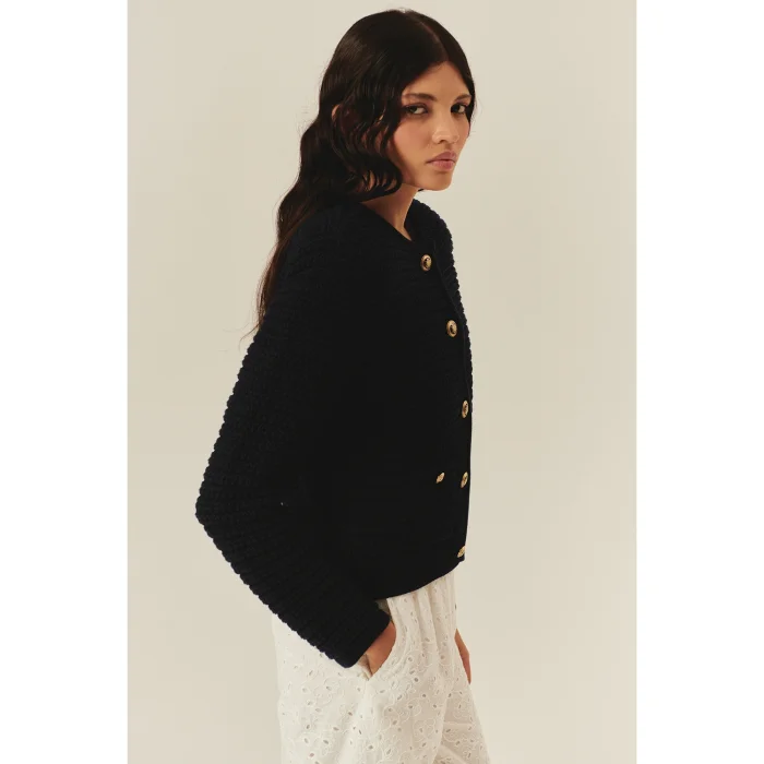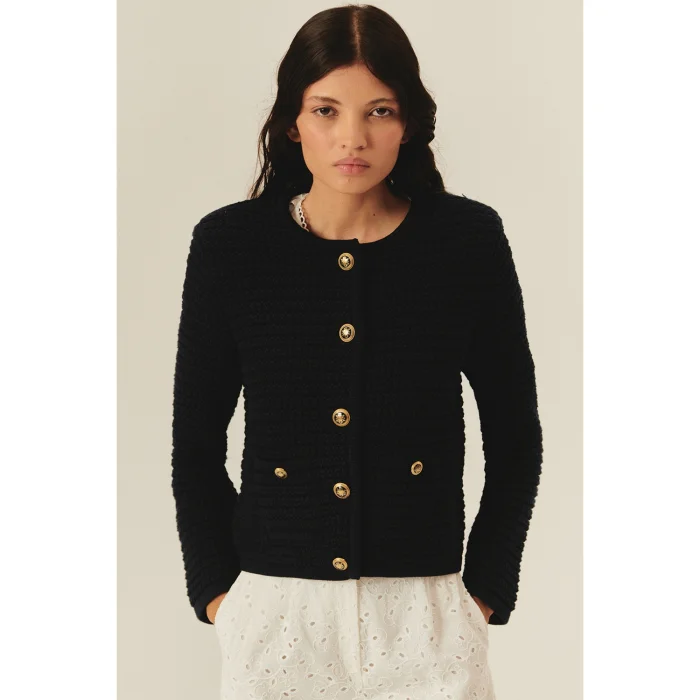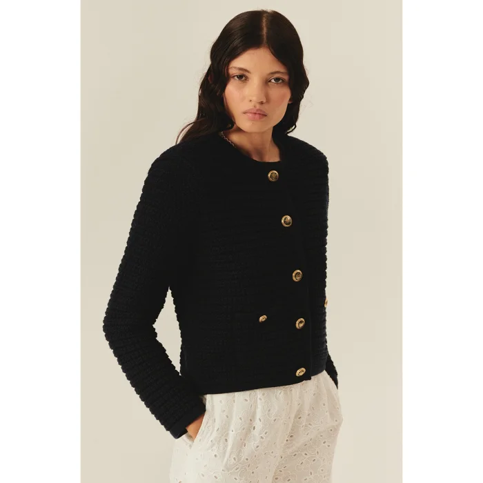Product: Pure Cotton Navy Blue Regular Knit Cardigan With Button Detail