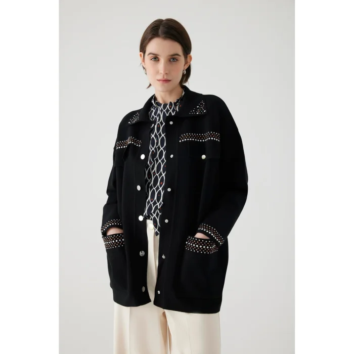 Product: Regular Cardigan With Stoned Pocket And Collar Detail