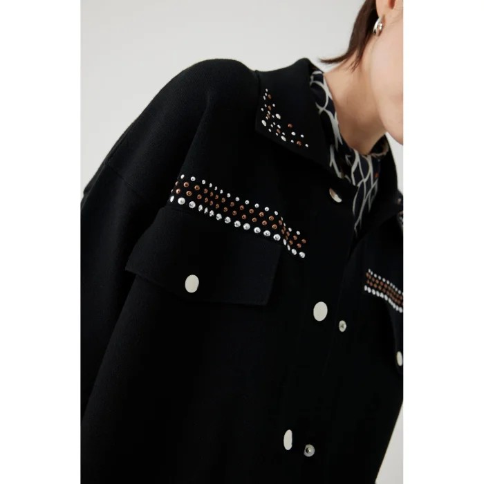 Product: Regular Cardigan With Stoned Pocket And Collar Detail