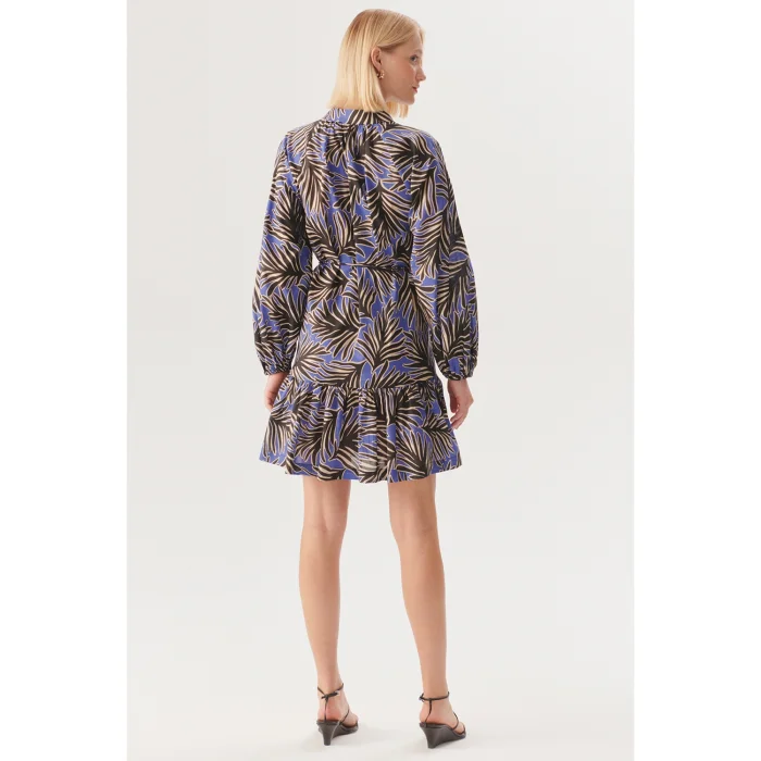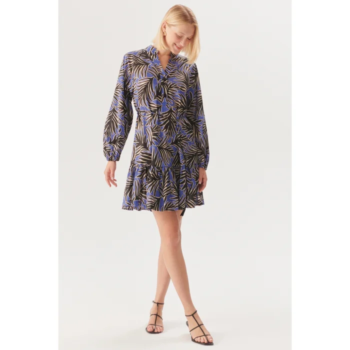 Drawing attention with its vibrant patterns and lively cut, the leaf patterned mini dress with lace details highlights comfortable elegance. Thanks to its flowing fabric and oversized cut, it offers all-day comfort, while the minimal V-neck and lace details add a modern and feminine touch. Leaf patterns inspired by nature create a dynamic and original style, while the slightly flounced skirt adds movement to the dress. It can be easily completed with sandals in the daytime style and with heels in evening combinations. Shaped by Exquise's bold patterns and elegant textures, this dress is designed for women who want to make a stylish statement in the city.