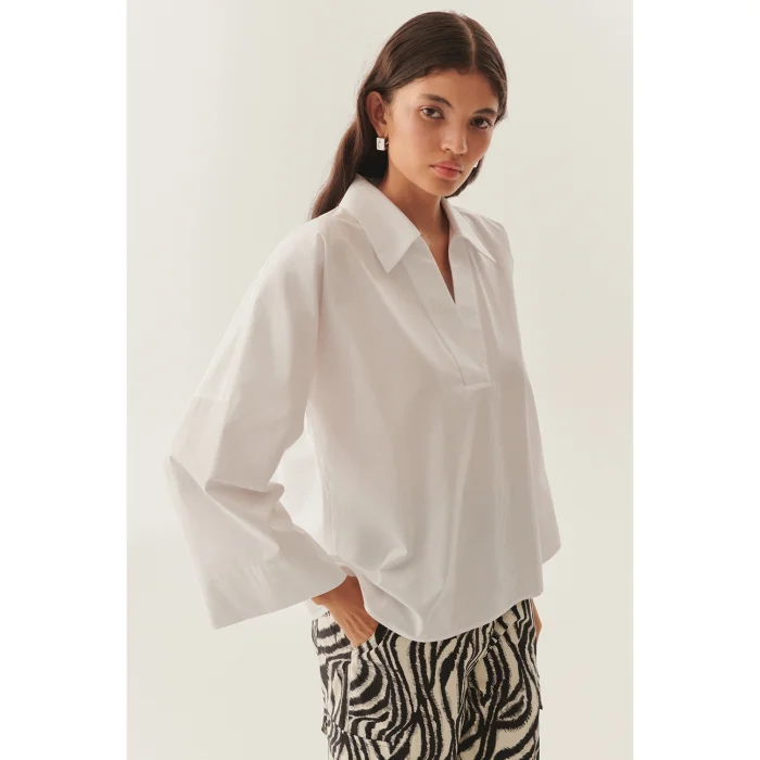 Relaxed Cut Wide Sleeve White Pure Cotton White Blouse