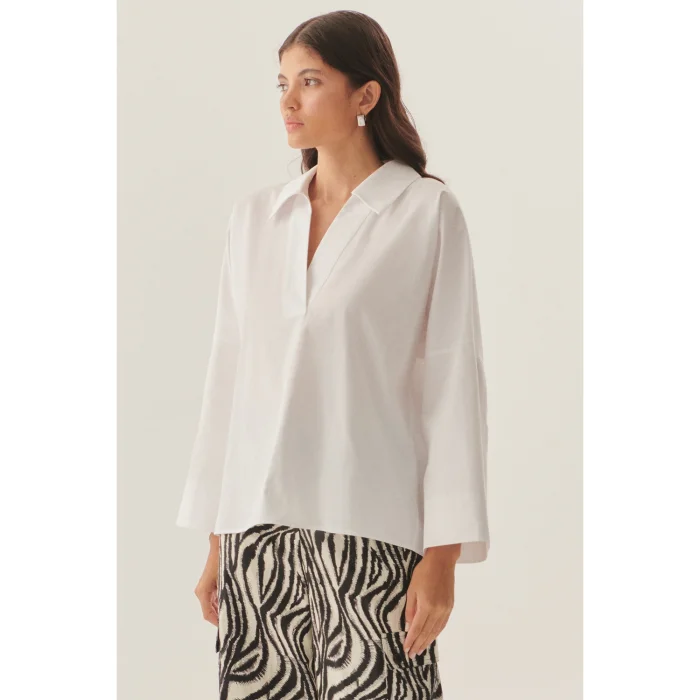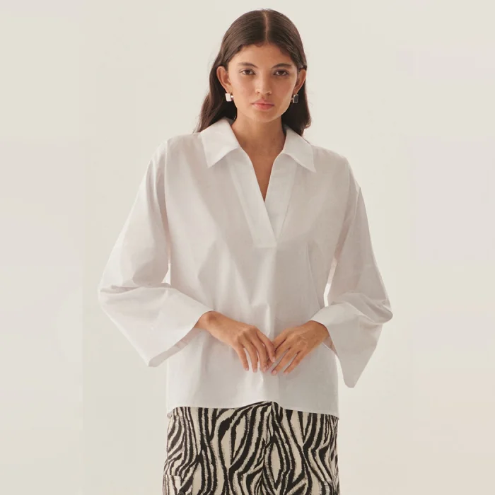 Product: Relaxed Cut Wide Sleeve White Pure Cotton White Blouse