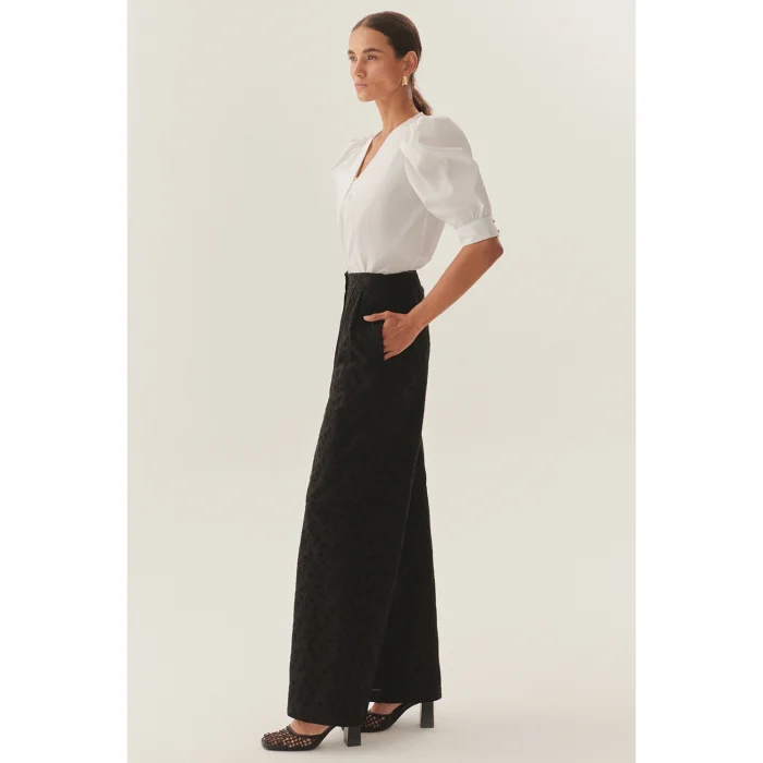 Combining the sophisticated elegance of classic black with light and elegant fisto fabric, Fisto Fabric Loose Fit Black Trousers add style to your every moment. While it offers a comfortable use thanks to its breathable texture, it creates a free and fluid silhouette with its loose cut.Designed with the perfect balance of elegance and comfort, these trousers offer effortless elegance in casual or special combinations.