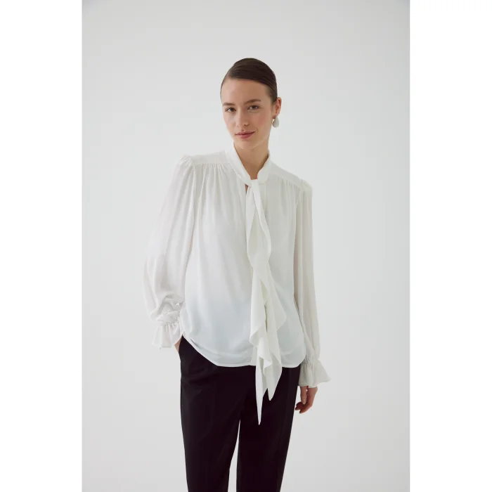 Product: Scarf Collar Sleeve Elastic Chiffon Regular Bone Blouse