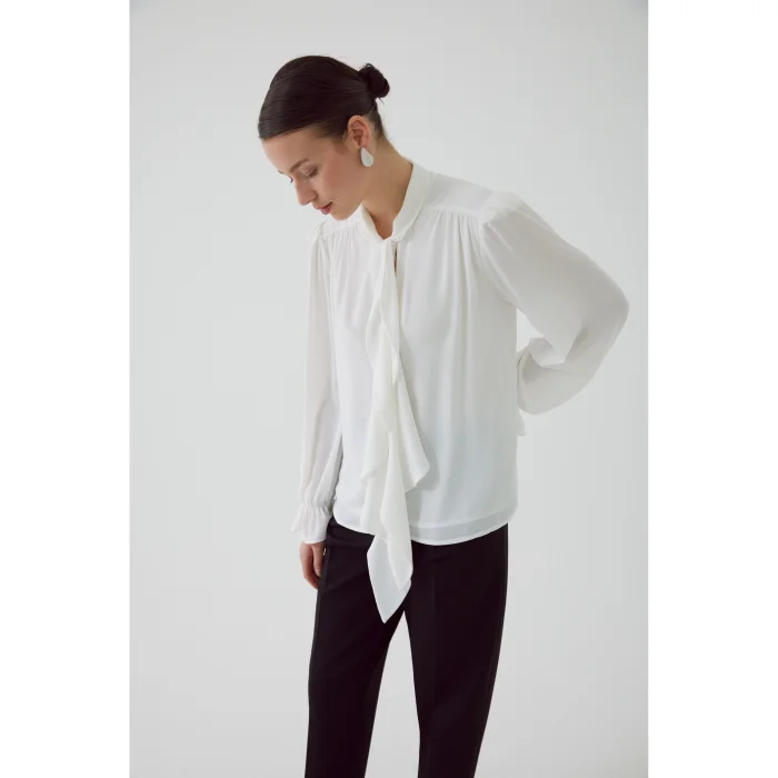 Product: Scarf Collar Sleeve Elastic Chiffon Regular Bone Blouse