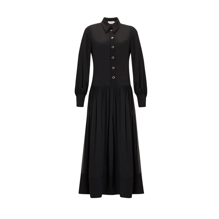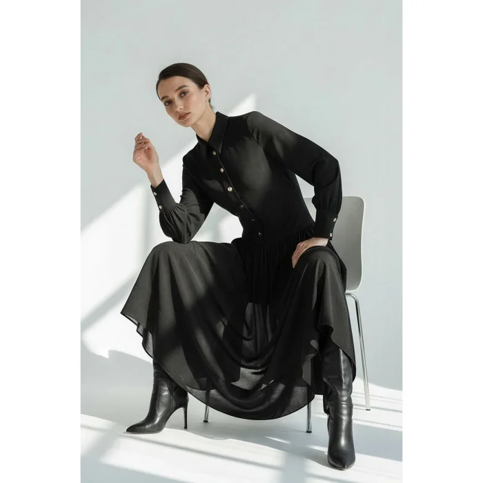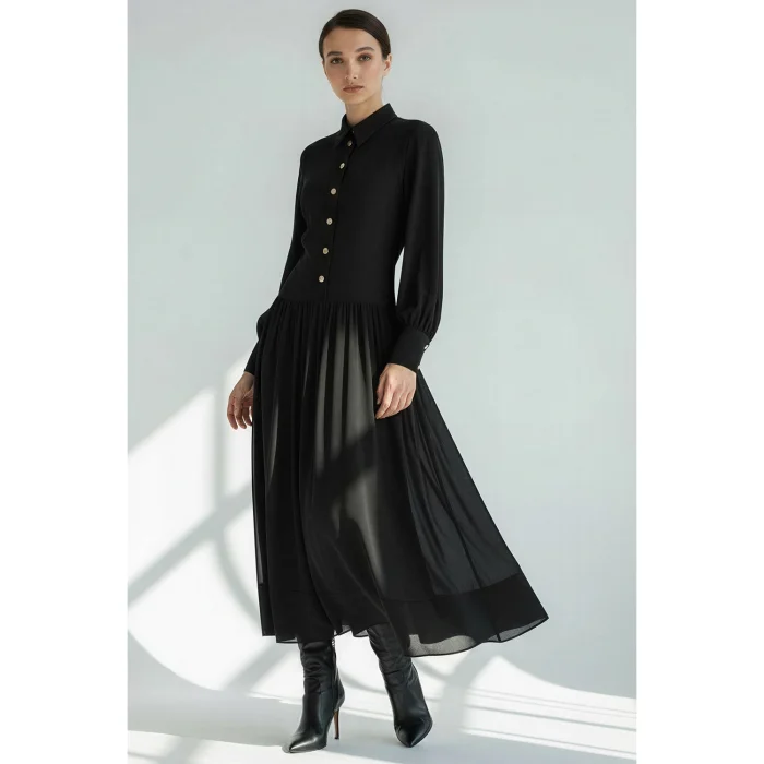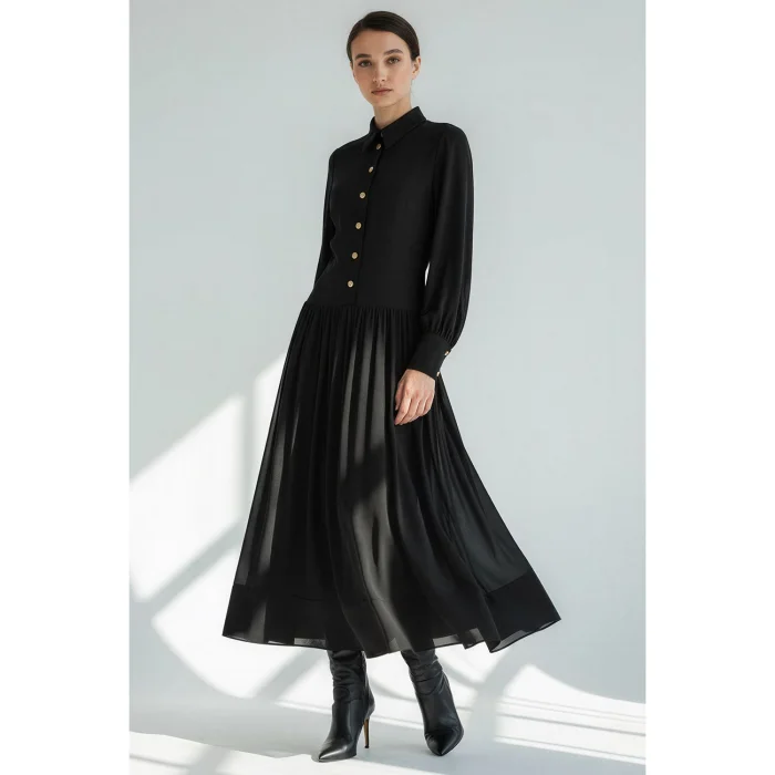 Product: Shirt Collar Button-down Lined Regular Midi Dress