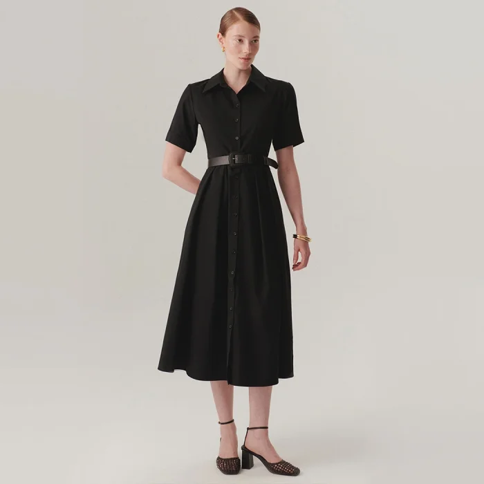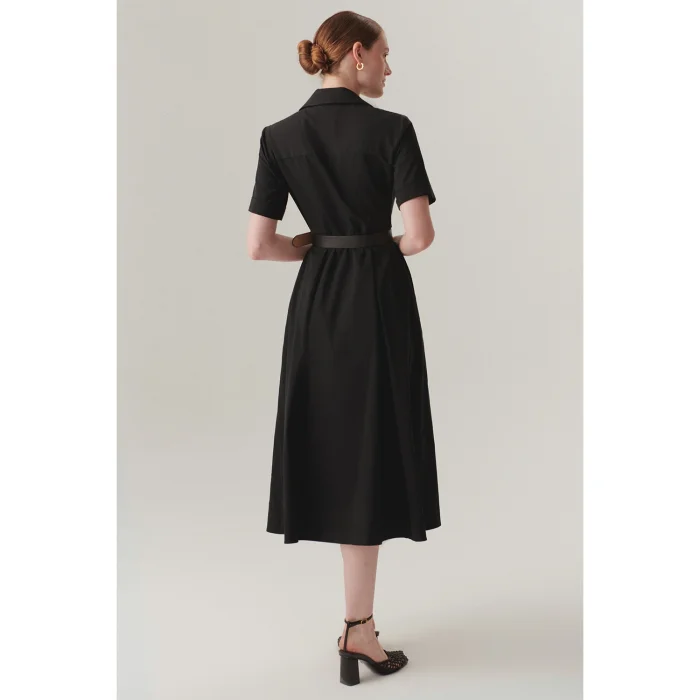 Combining the elegant stance of a shirt collar detail with the lightness of short sleeves, this belted midi dress emphasizes both your classic and modern style. While the stylish belt design that fits at the waist reveals your silhouette, you will stand out in any environment thanks to the cut that integrates with the nobility of black.