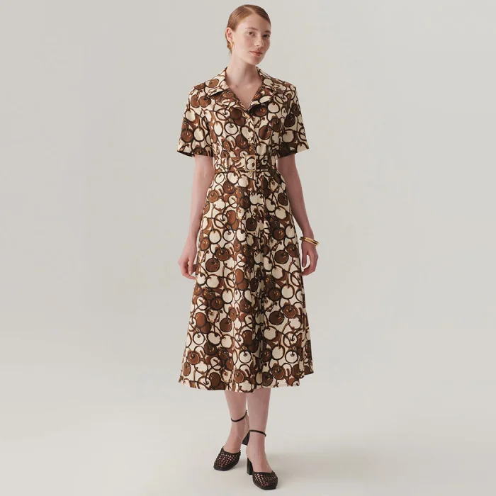 Product: Short Sleeve Front Buttoned Cotton Fabric Patterned Dress