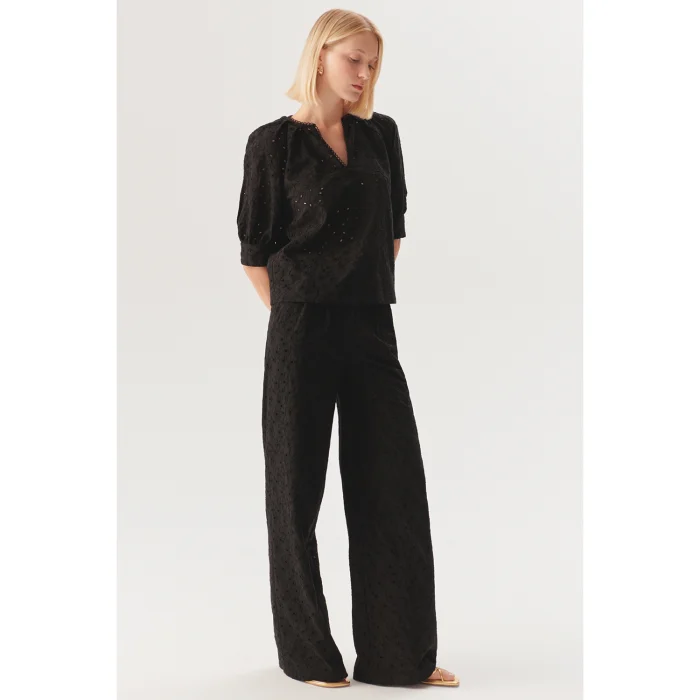 The most stylish interpretation of purity and romance! The elegant texture and breathable structure of the Fisto fabric make this blouse an indispensable part of the summer months. The V-neck detail offers a modern and feminine touch, while the relaxed fit allows you to move freely. This blouse, which can accompany every moment from daily combinations to holiday elegance, blends effortlessly with linen trousers, denim shorts or light skirts. A minimal, spacious and timeless piece for those who love the elegance of natural textures!