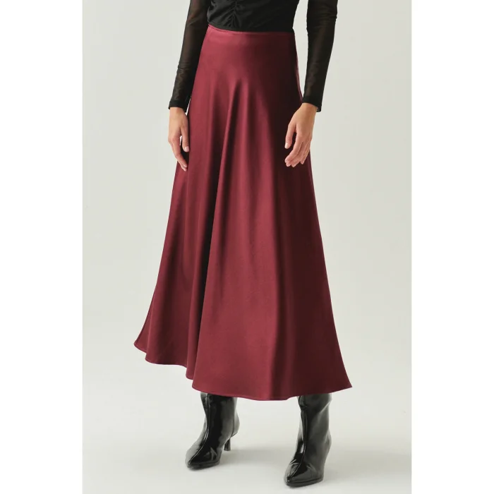 Product: Side Zippered High Waist Grosgrain Detailed Satin Regular Midi Skirt