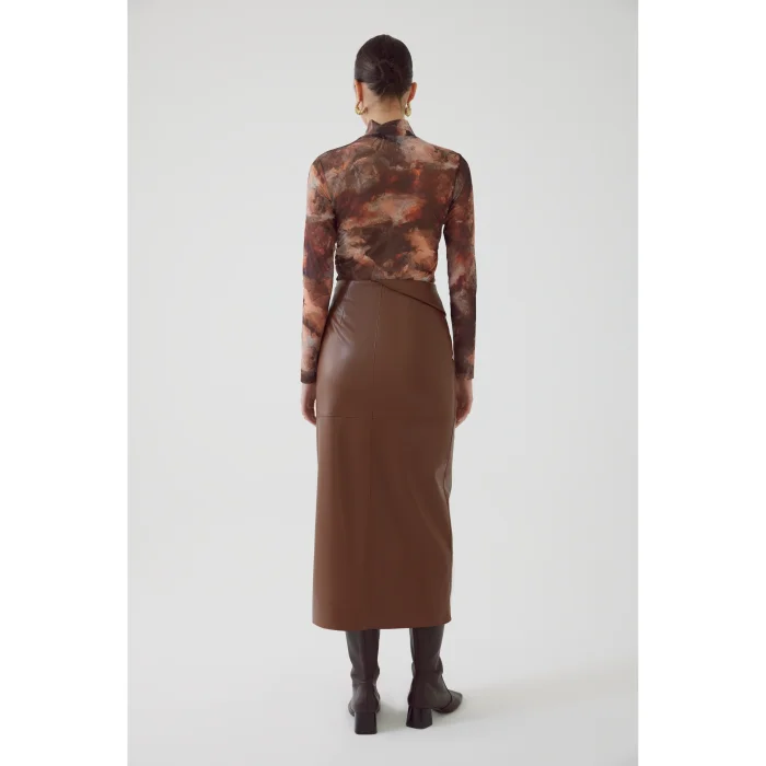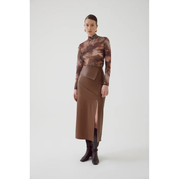 Product: Slit Regular Brown Leather Look Skirt