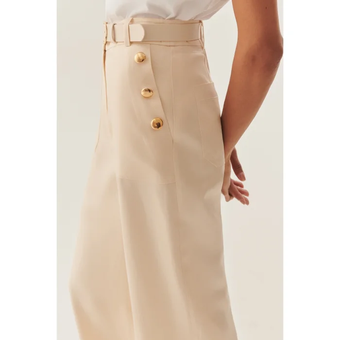 Product: Straight Cut Matching Belted High Waist Beige Trousers