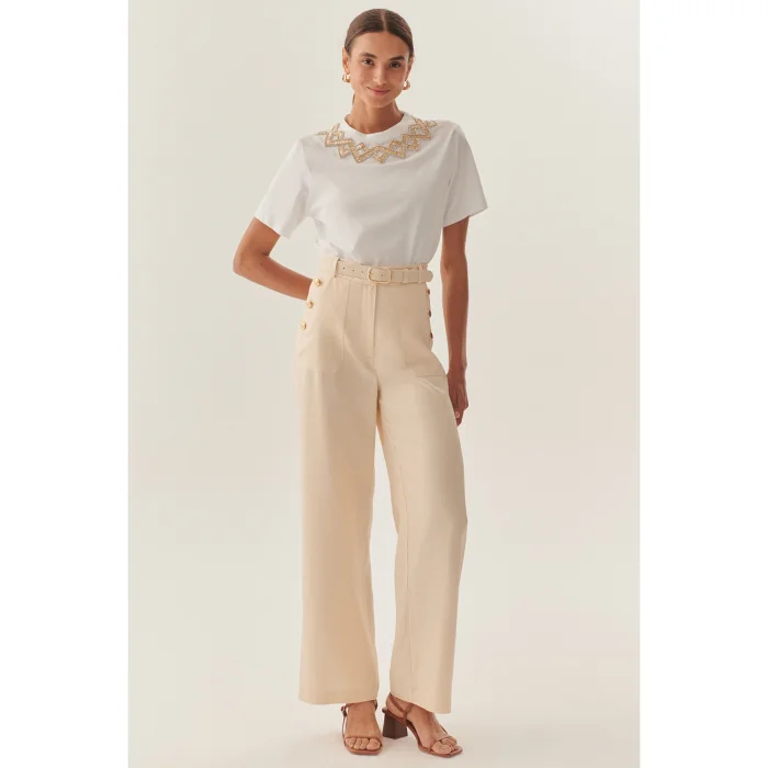 Product: Straight Cut Matching Belted High Waist Beige Trousers
