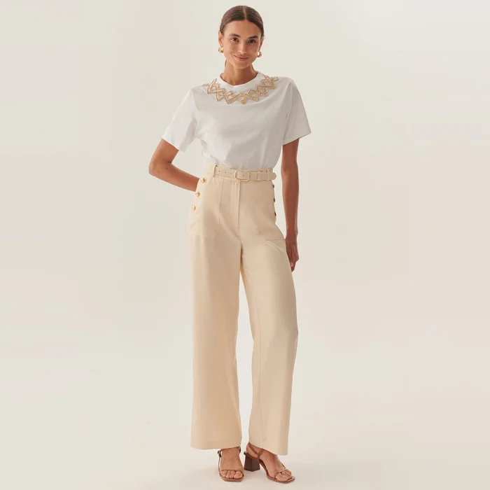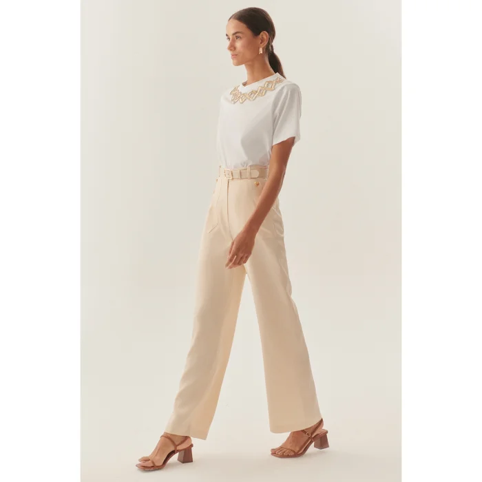 Product: Straight Cut Matching Belted High Waist Beige Trousers