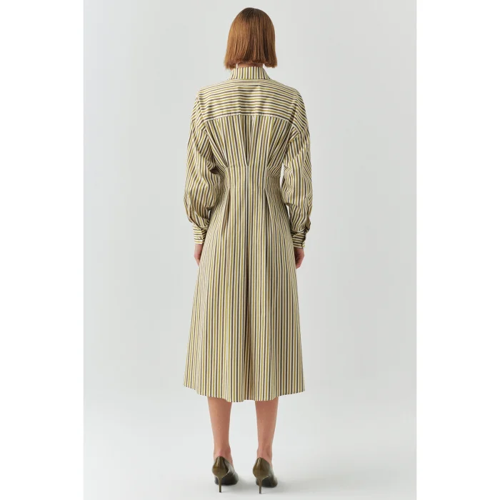 Product: Striped Shirt Collar Long Sleeve Slim Fit Midi Dress