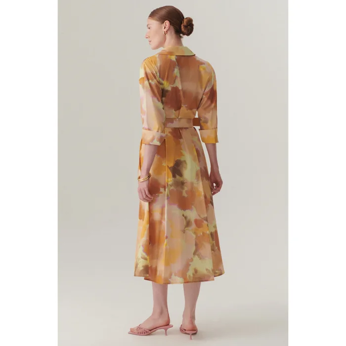 Standing out with its striking abstract patterns, this midi length dress offers an elegant and modern silhouette thanks to its troauchar sleeve design. While the belt detail at the waist emphasizes your body lines and gives it a feminine touch, it provides comfort all day long with its comfortable pattern.