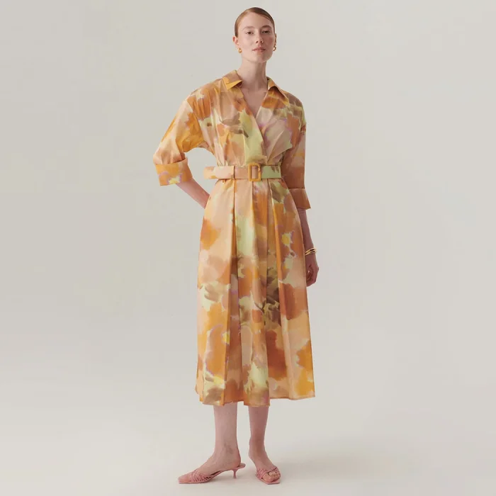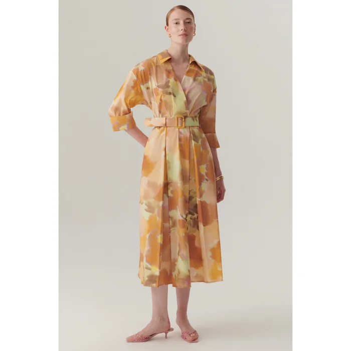 Standing out with its striking abstract patterns, this midi length dress offers an elegant and modern silhouette thanks to its troauchar sleeve design. While the belt detail at the waist emphasizes your body lines and gives it a feminine touch, it provides comfort all day long with its comfortable pattern.