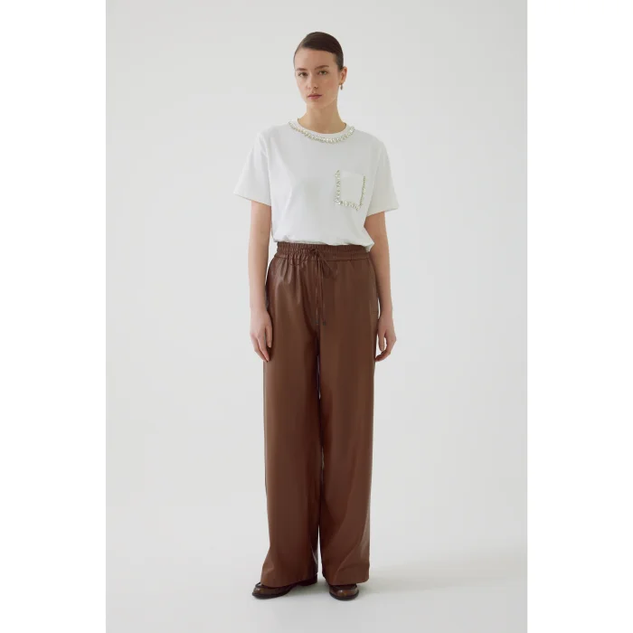 Vegan Leather Regular Pants With Pockets And Elastic Waist