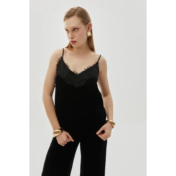 Product: Velvet Lace Detailed V-neck Regular Blouse
