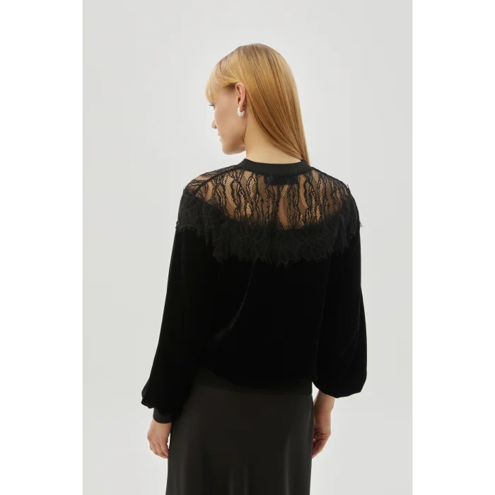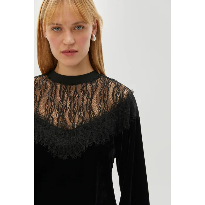 This black blouse, which draws attention with the harmony of velvet and tulle, adds a modern touch to elegance. While it fits comfortably on the body with its regular fit cut, it is a piece that will make a difference in any environment with its special details. Style your wardrobe as one of the sophisticated selections from the 24 Fall/Winter collection.