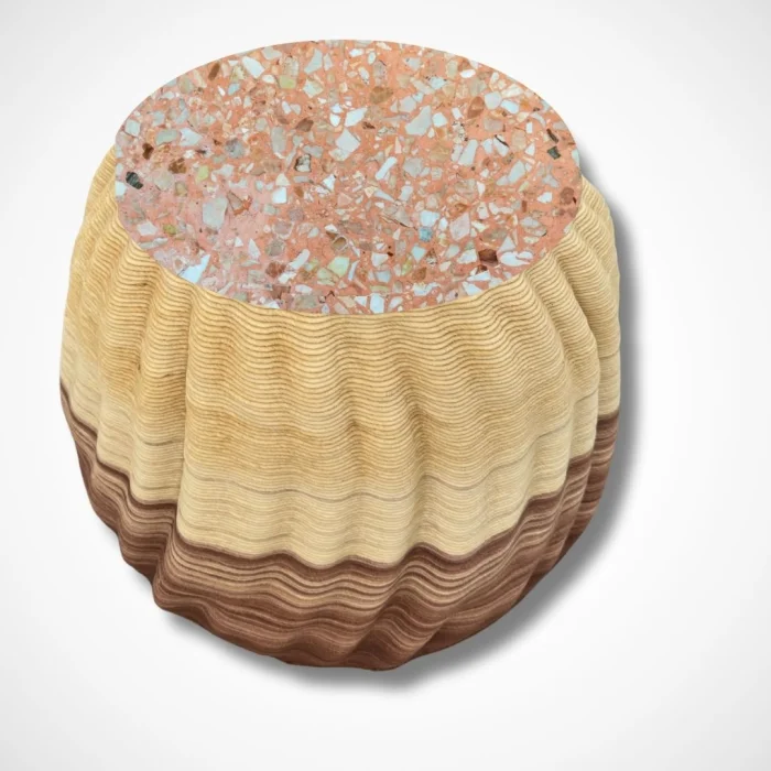 Large Scale 3D printed. Made from 100% recyclable biocomposite materials. Includes terrazzo marble elements for a refined, textured finish. Organic color options, hand-applied with unique touches. Available in mixed color variations upon request. Customizable color selections for a personalized design. Abstract form inspired by natural cactus shapes. Lightweight yet durable construction. Sustainable and eco-friendly production process. Perfect for modern, sustainable interior spaces.