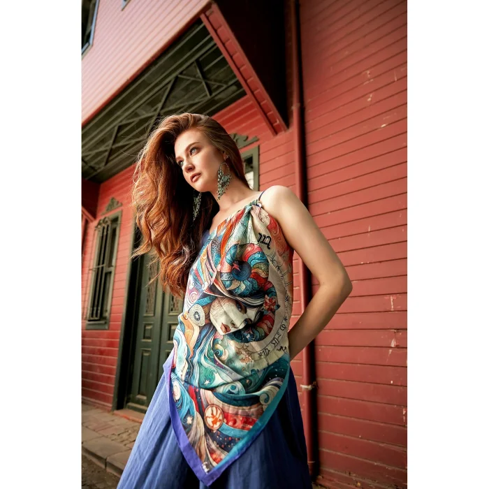Aries is a custom-designed Cotton Voile Bandana that combines celestial beauty and mystical icons with timeless aesthetics. It is designed with inspiration from the fascinating world of astrology and mythology to emphasize the inner beauty, strength, attractiveness and uniqueness of women at the highest level. Aries Cotton Voile bandana will crown your personal style with stars, adding an aesthetic and mystical touch beyond its peers to every day.