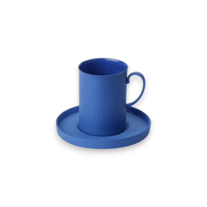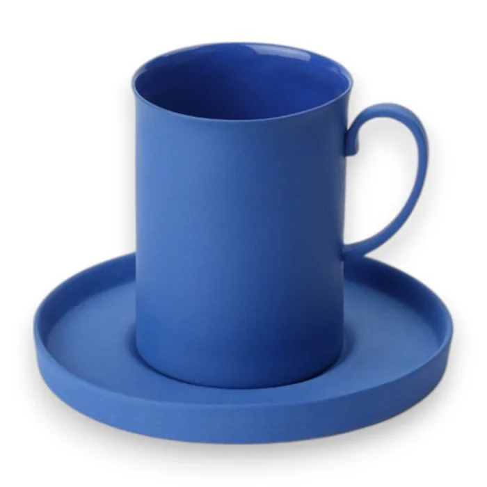 The inner surface of the cup is glossy outside matte The inner surface of the plate is matte